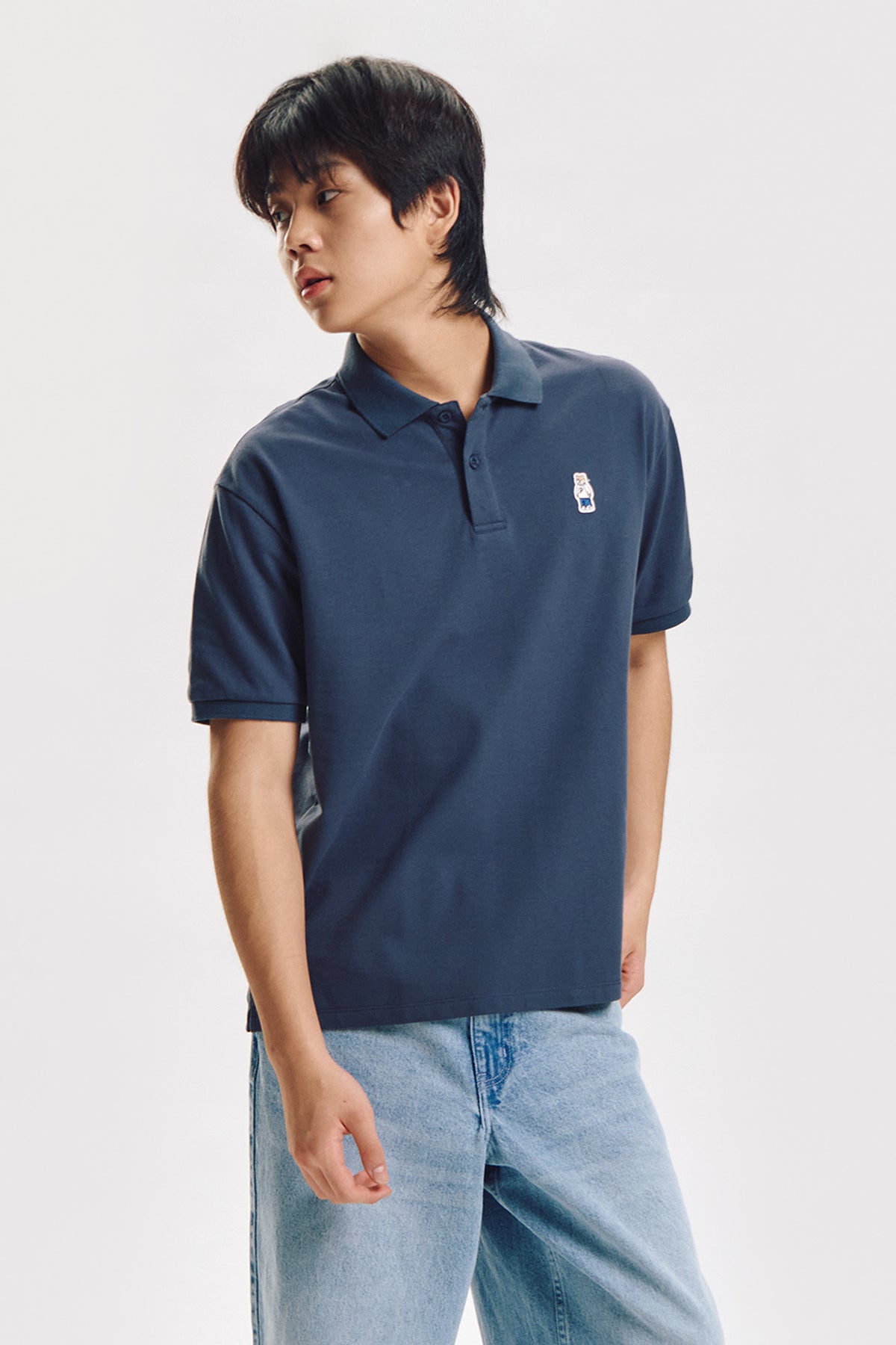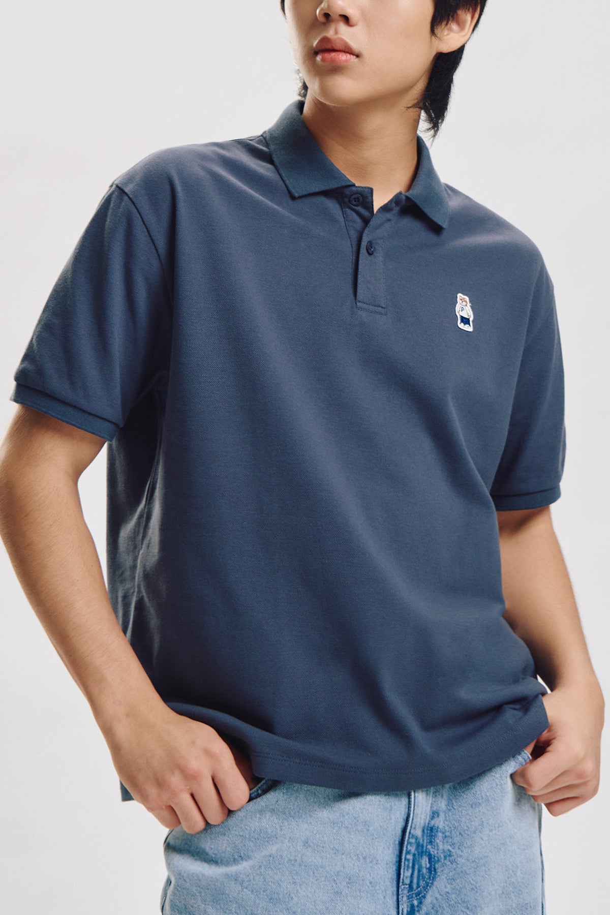 Relaxed Fit Polo with Crew Bear Patch Embroidery