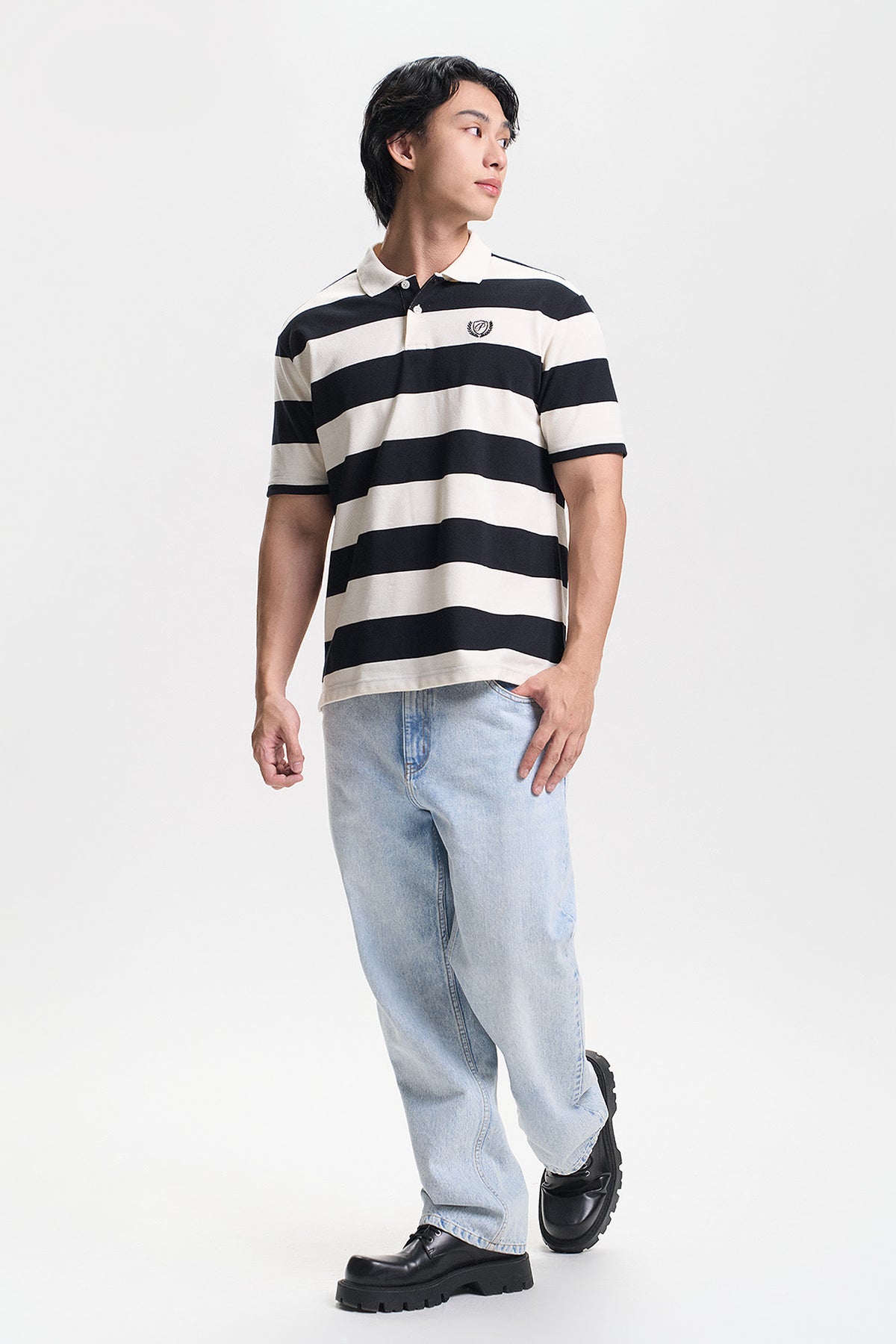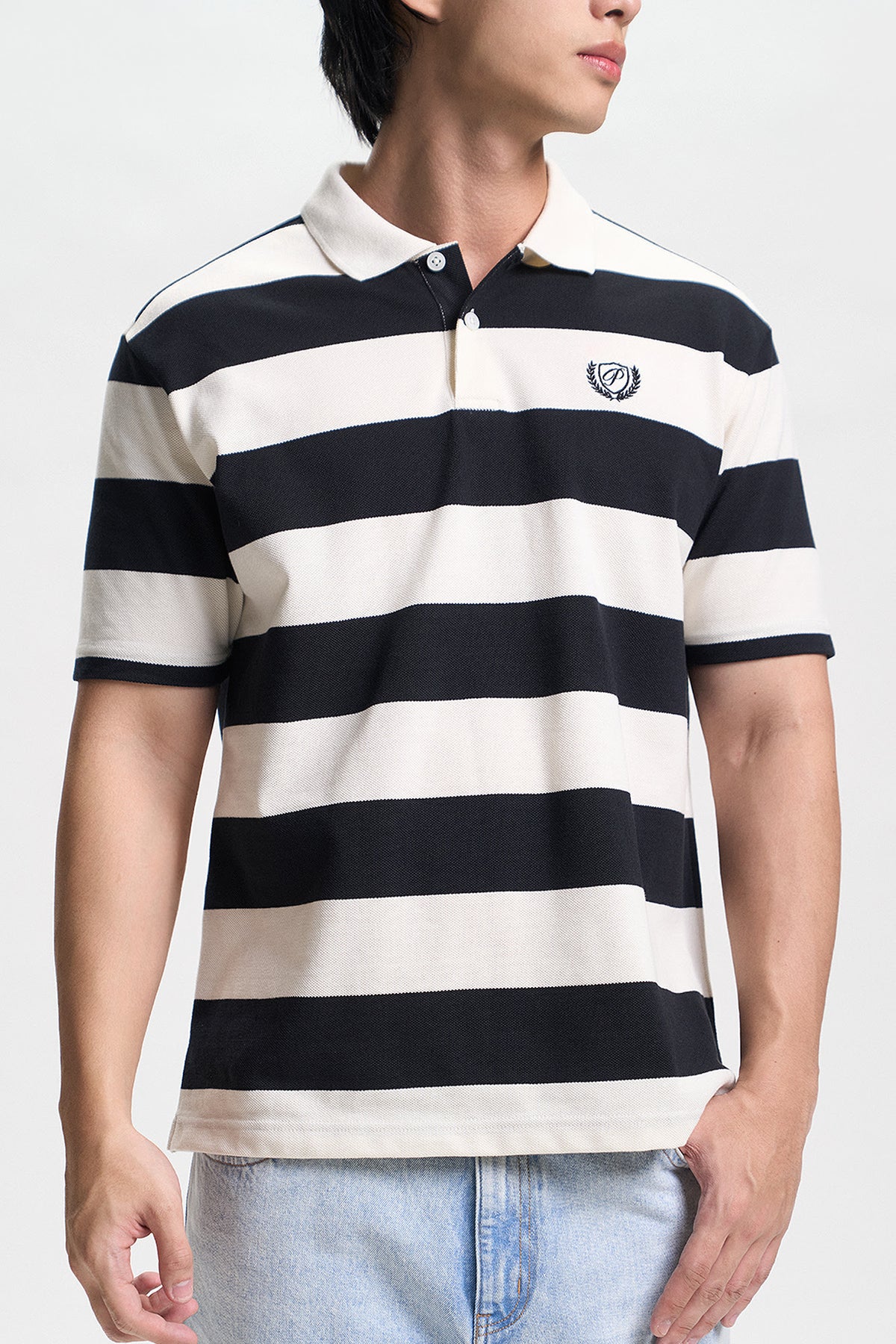 Stripes Relaxed Polo with Embroidery