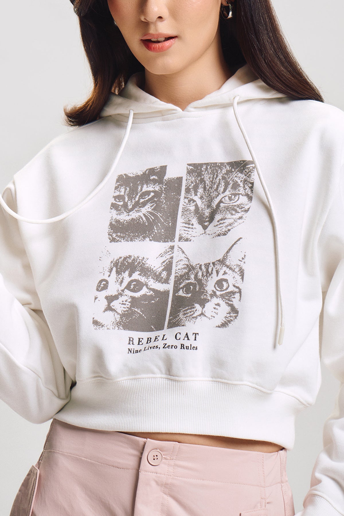 Rebel Cat Relaxed Cropped Hoodie