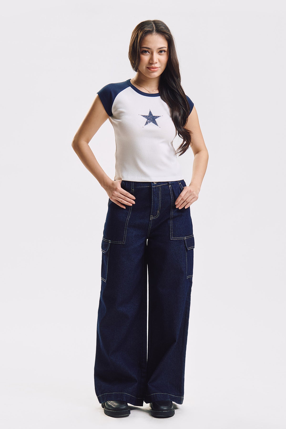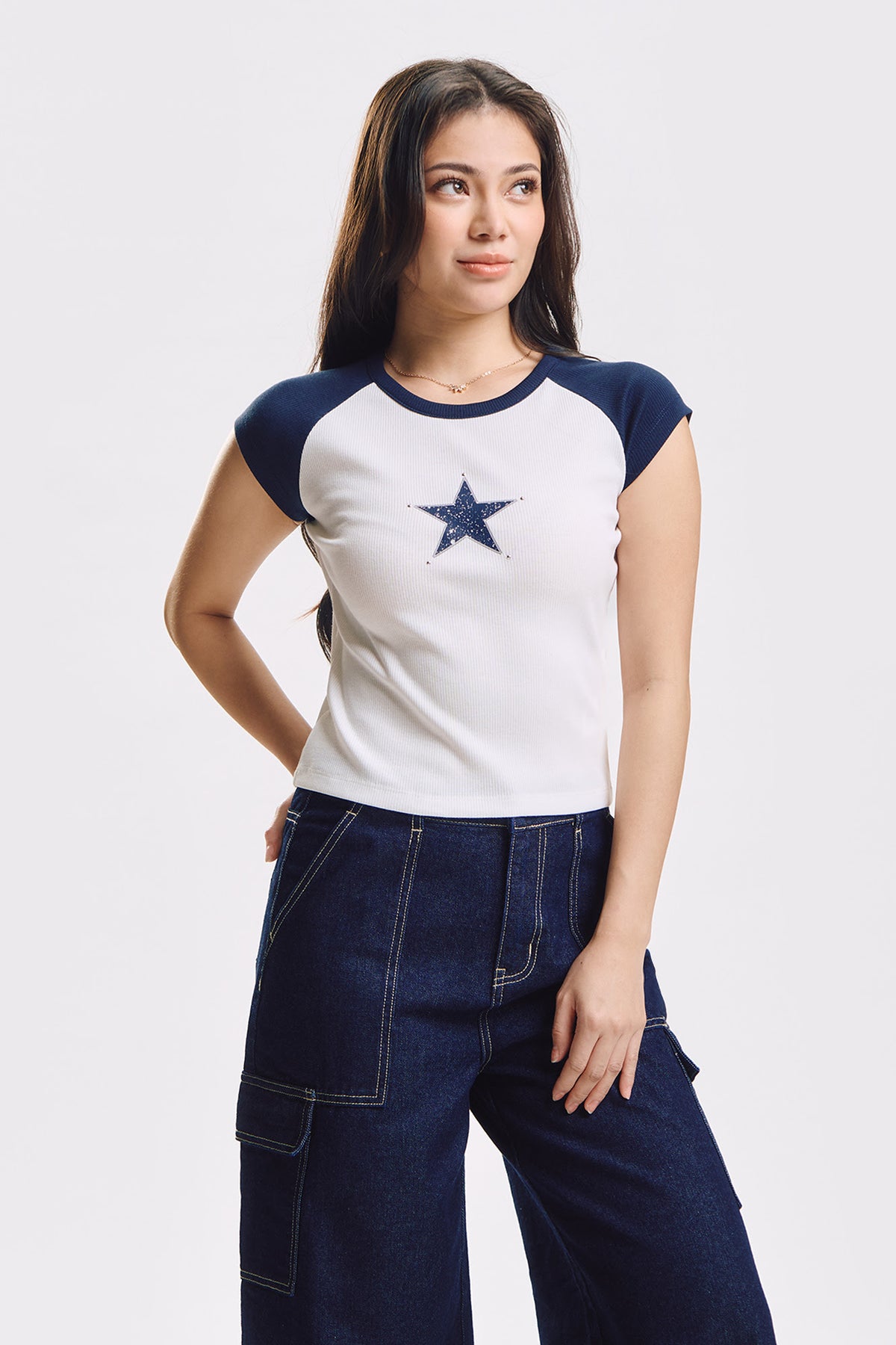 Slim Ribbed Knit Top with Star Patch