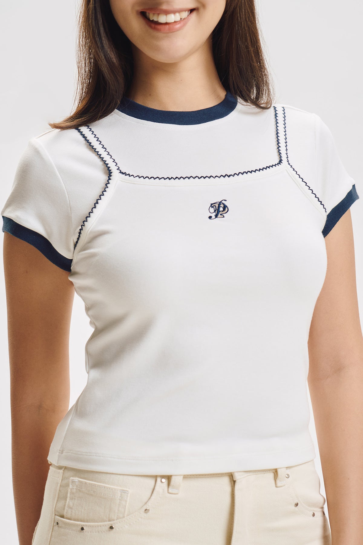 Slim Top with Contrast Detail