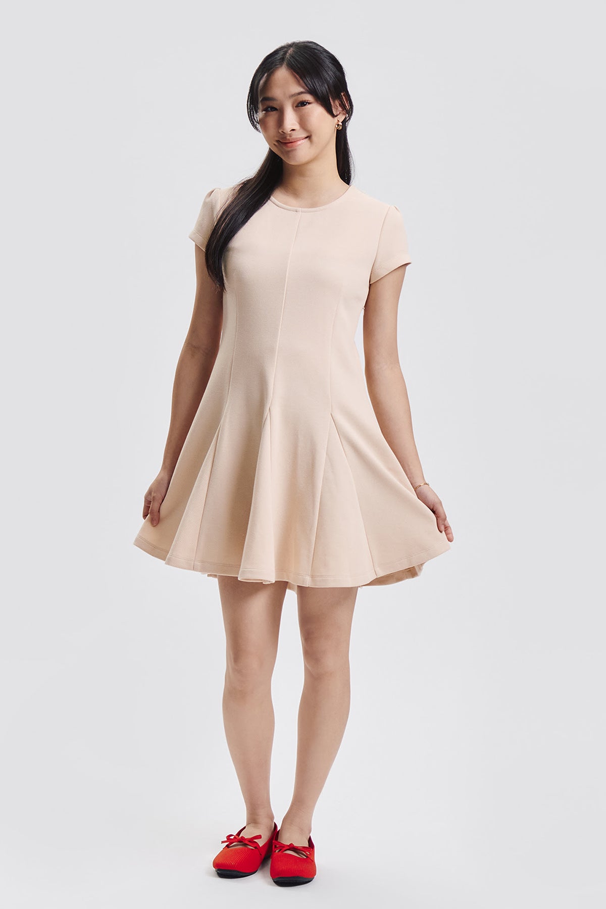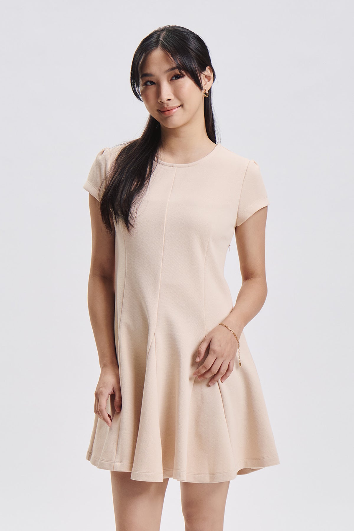 Cap Sleeve Box Pleat Mini Dress
