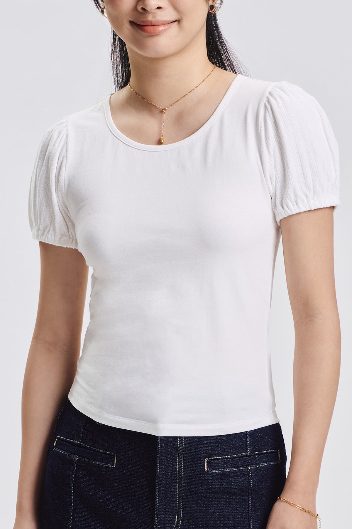 Cropped Pointelle Puff Sleeve Top