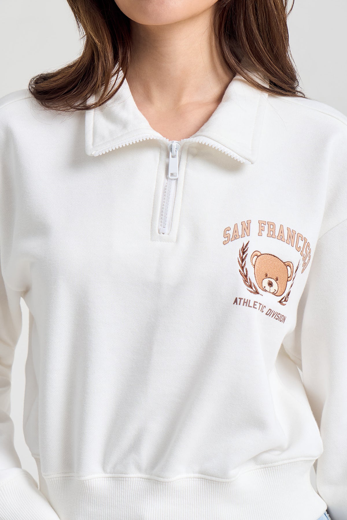 San Francisco Relaxed Fit Cropped Half-Zip Pullover Sweater